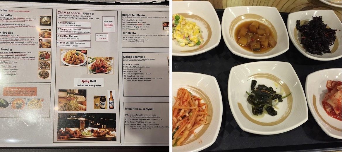 Think of perfectly crispy chicken wings glassed with superb Korean sauce without being soggy at the same time - SUPERB. Spicy rice cake , powerful, Jab Chae one of the best, Chicken bulgogi flavorful. Good value for money tasty plates. Each with a different flavour. Very polite service by staff. Good value. Simple deco. Shop targeting taste and value. One of the best Korean restaurants in London. Offers barbecue on tables. Definitely worth a visit.